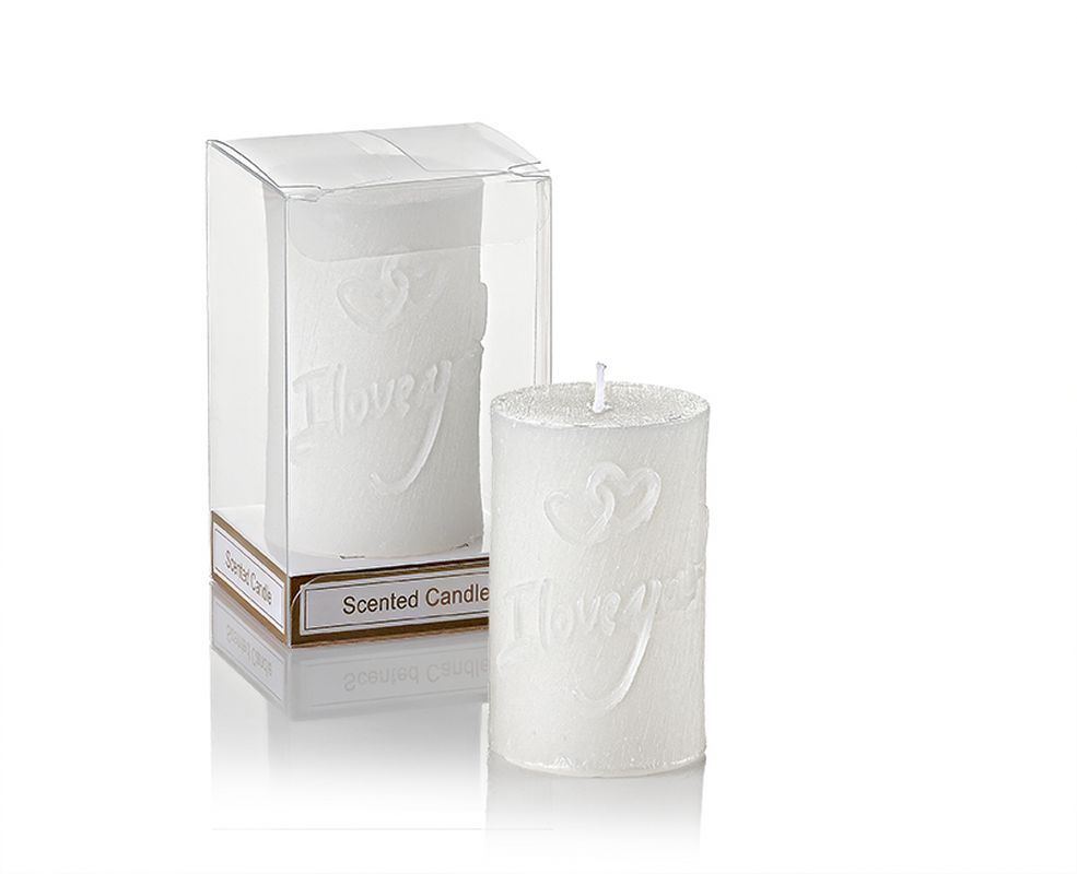 ΜΠΟΜΠΟΝΙΕΡΑ ΑΡΩΜΑΤΙΚΟ ΛΕΥΚΟ ΚΕΡΙ I LOVE YOU Φ4.5X7.5CM ΣΕ PVC ΚΟΥΤΑΚΙ 6X6X9.5CM ποσότητα