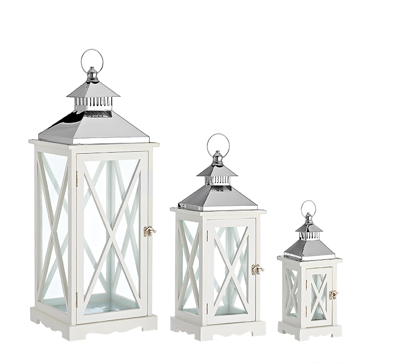 / ΔΙΑΚΟΣΜΗΤΙΚΑ ΦΑΝΑΡΙΑ ΞΥΛΙΝΑ ΛΕΥΚΑ ΜΕ ΜΕΤΑΛΛΙΚΟ ΑΝΩ ΜΕΡΟΣ ΣΕΤ 3 ΤΜΧ 24x24x70 18x18x50 12x12x36