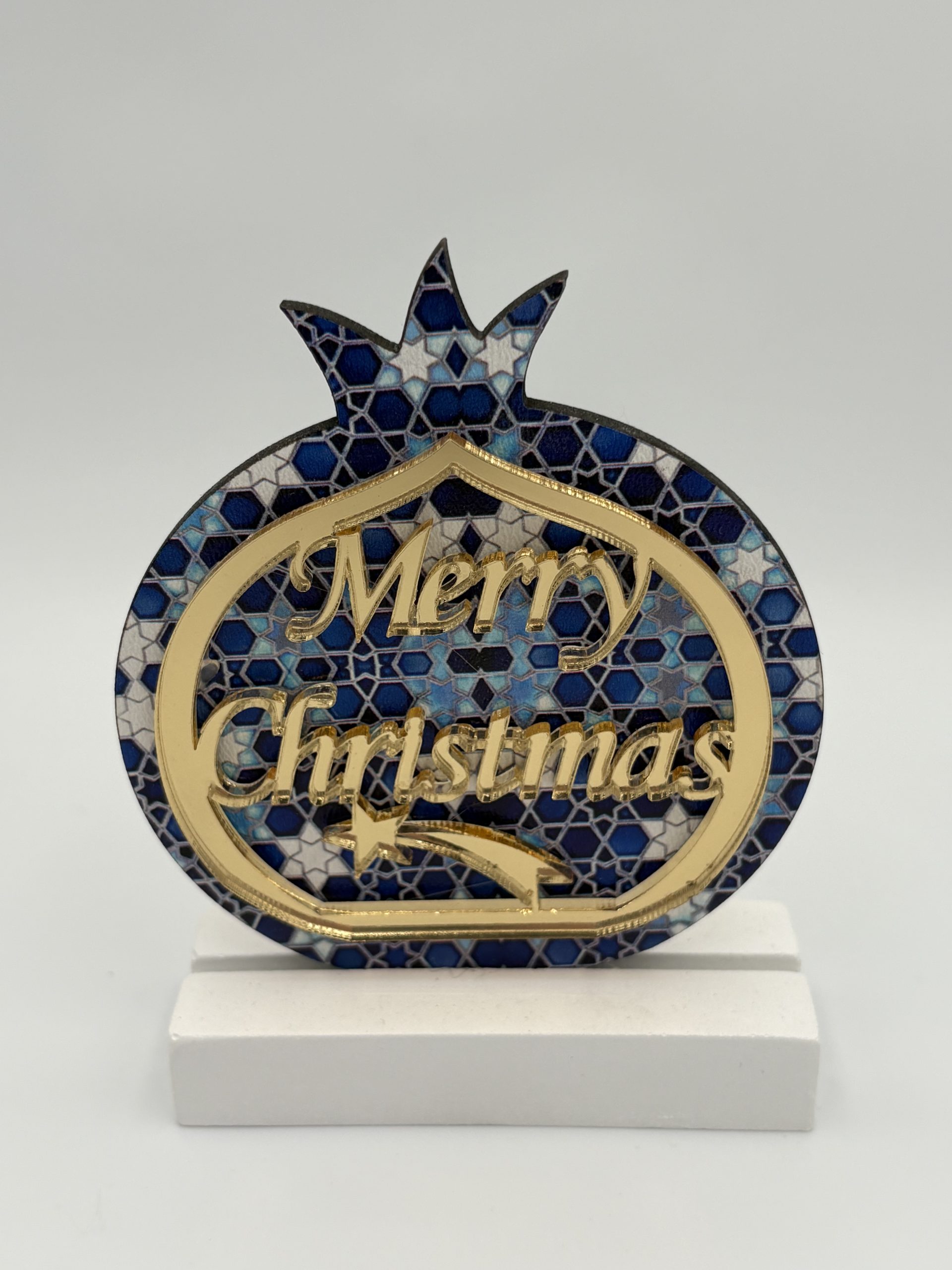 / ΕΠΙΤΡΑΠΕΖΙΟ ΓΟΥΡΙ ΞΥΛΙΝΟ ΡΟΔΙ ΜΕ PLEXIGLASS MERRY CHRISTMAS & ΜΠΛΕ ΑΣΤΕΡΑΚΙΑ 7.5×10.5cm