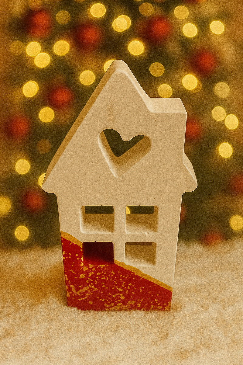 ΕΠΙΤΡΑΠΕΖΙΟ ΚΕΡΑΜΙΚΟ ΓΟΥΡΙ ΣΠΙΤΑΚΙ ΛΕΥΚΟ-ΚΟΚΚΙΝΟ ΜΕ ΧΡΥΣΕΣ ΠΙΤΣΙΛΙΕΣ 5.5x10cm