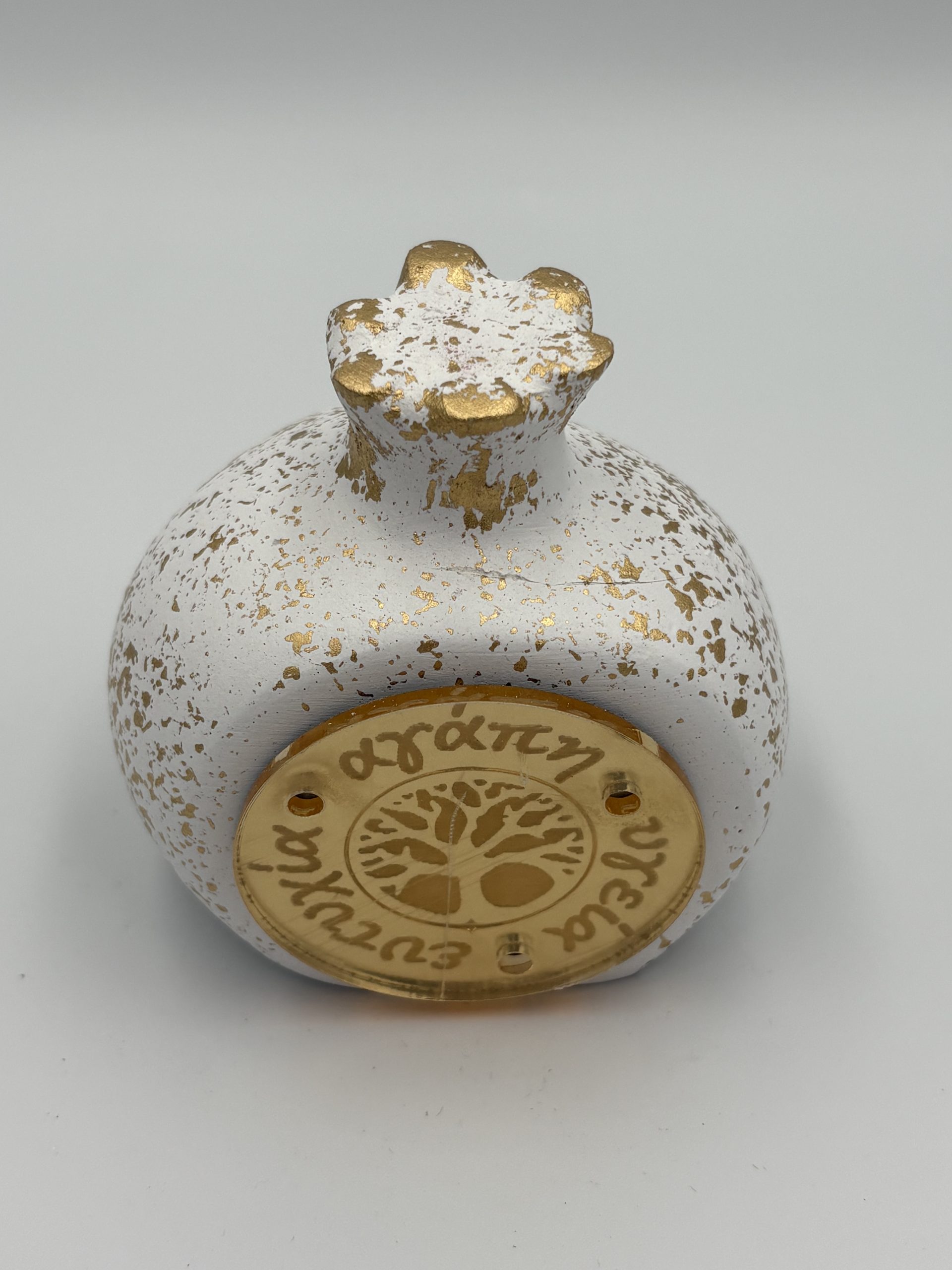 ΚΕΡΑΜΙΚΟ ΡΟΔΙ ΛΕΥΚΟ ΜΕ ΧΡΥΣΕΣ ΠΙΤΣΙΛΙΕΣ ΚΑΙ PLEXIGLASS ΥΓΕΙΑ ΑΓΑΠΗ ΕΥΤΥΧΙΑ 7×6.5cm