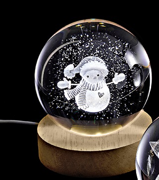 ΚΡΥΣΤΑΛΛΙΝΗ ΜΠΑΛΑ ΦΩΤΙΣΤΙΚΟ ΜΕ ΞΥΛΙΝΗ ΒΑΣΗ ΧΙΟΝΑΝΘΡΩΠΟΣ 7cm
