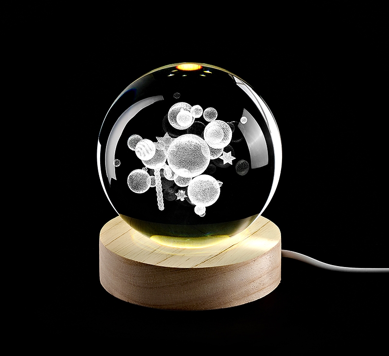 ΚΡΥΣΤΑΛΛΙΝΗ ΜΠΑΛΑ ΦΩΤΙΣΤΙΚΟ ΜΕ ΞΥΛΙΝΗ ΒΑΣΗ ΧΡΙΣΤΟΥΓΕΝΝΙΑΤΙΚΕΣ ΜΠΑΛΕΣ 6cm