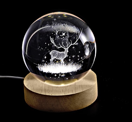 ΚΡΥΣΤΑΛΛΙΝΗ ΜΠΑΛΑ ΦΩΤΙΣΤΙΚΟ ΜΕ ΞΥΛΙΝΗ ΒΑΣΗ ΕΛΑΦΙ 7cm