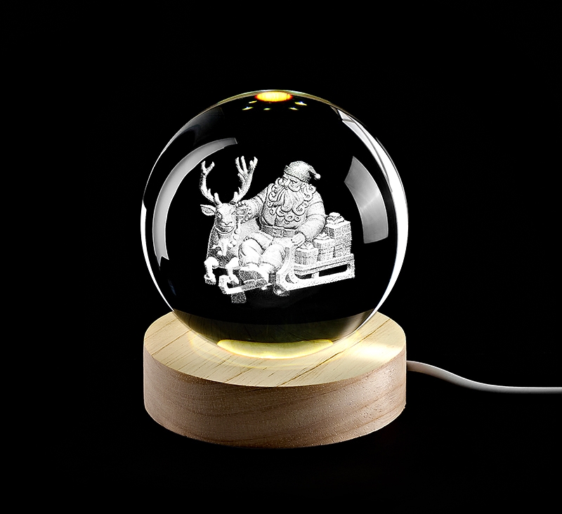 ΚΡΥΣΤΑΛΛΙΝΗ ΜΠΑΛΑ ΦΩΤΙΣΤΙΚΟ ΜΕ ΞΥΛΙΝΗ ΒΑΣΗ ΕΛΚΗΘΡΟ ΜΕ ΤΑΡΑΝΔΟ 10cm
