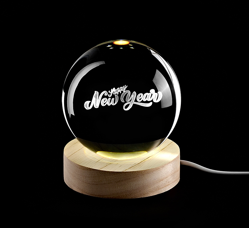ΚΡΥΣΤΑΛΛΙΝΗ ΜΠΑΛΑ ΦΩΤΙΣΤΙΚΟ ΜΕ ΞΥΛΙΝΗ ΒΑΣΗ HAPPY NEW YEAR 10cm
