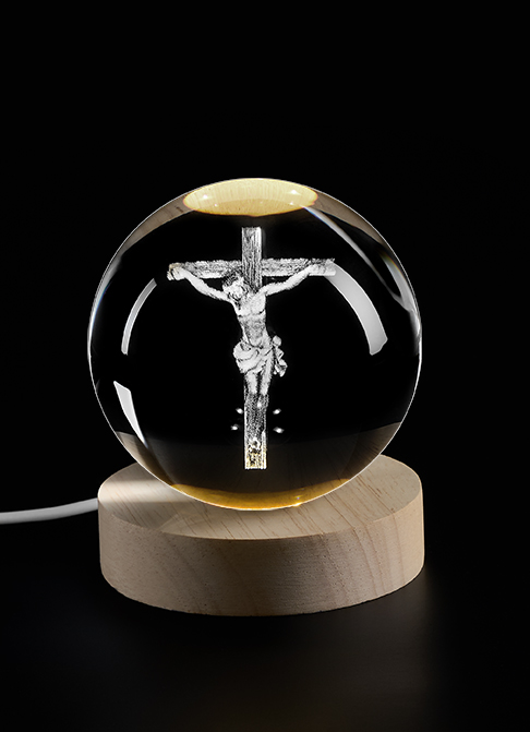 ΚΡΥΣΤΑΛΛΙΝΗ ΜΠΑΛΑ ΦΩΤΙΣΤΙΚΟ ΜΕ ΞΥΛΙΝΗ ΒΑΣΗ ΕΣΤΑΥΡΩΜΕΝΟΣ 6cm ποσότητα