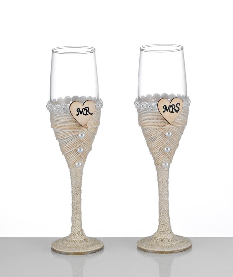ΓΥΑΛΙΝΟ ΠΟΤΗΡΙ MR & MRS ΣΕΤ 2 ΤΕΜΑΧΙΩΝ ΜΕ ΚΟΥΤΙ 22Υ