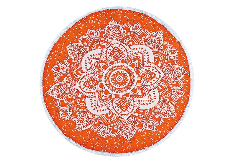 ΠΕΤΣΕΤΑ ΠΑΡΑΛΙΑΣ ΠΟΡΤΟΚΑΛΙ MANDALA ΒΑΜΒΑΚΕΡΗ ΣΤΡΟΓΓΥΛΗ FOUTA Φ180cm