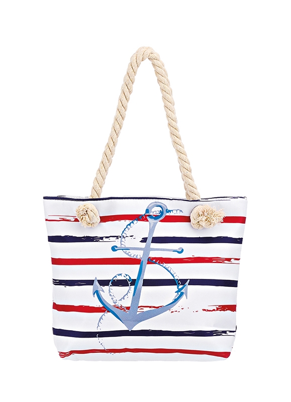 ΤΣΑΝΤΑ ΘΑΛΑΣΣΗΣ ΑΔΙΑΒΡΟΧΗ ΛΕΥΚΗ ΜΕ ΚΟΚΚΙΝΕΣ-NAVY ΡΙΓΕΣ & ΑΓΚΥΡΑ 2 ΟΨΕΩΝ ''GREECE'' 33x8x26cm ποσότητα