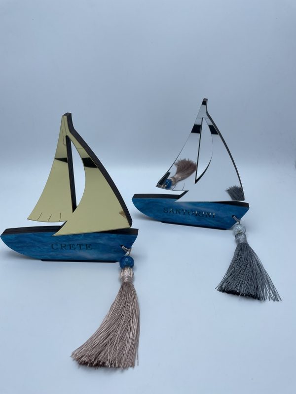 ΔΙΑΚΟΣΜΗΤΙΚΟ ΕΠΙΤΡΑΠΕΖΙΟ ΚΑΡΑΒΙ ΜΕ ΤΟΠΩΝΥΜΙΟ ΞΥΛΟ & PLEXIGLASS ΜΕ ΦΟΥΝΤΑ 18.5×1.5x20cm